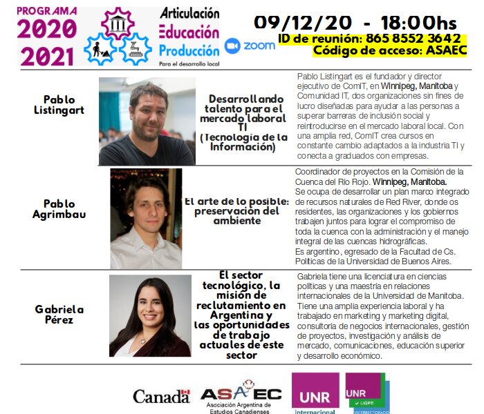 El Programa de Articulación EDUCACIÓN-PRODUCCIÓN para el Desarrollo local anuncia las conferencias del Miércoles 9 de diciembre de 2020, desde las 18 hs.