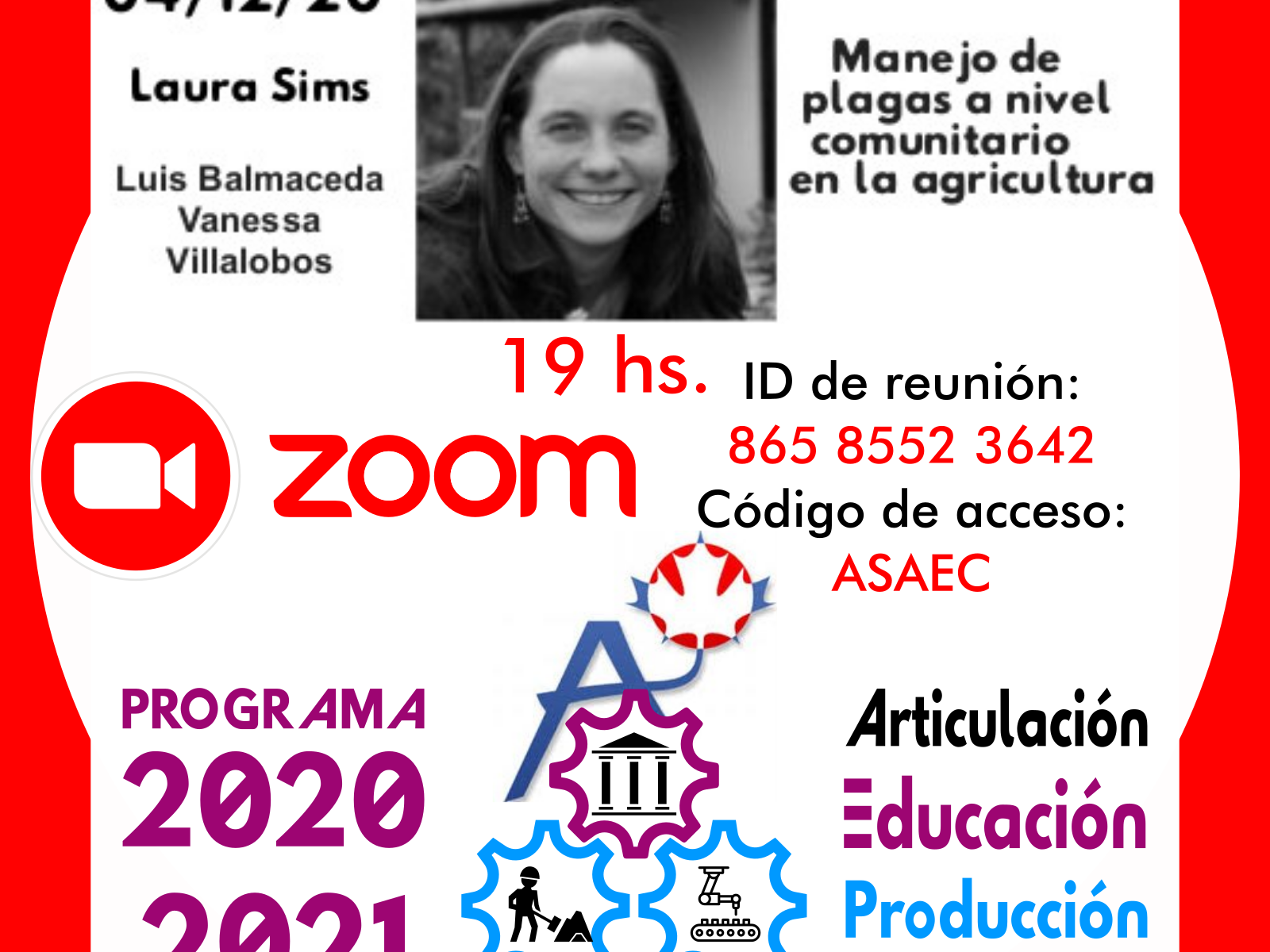 El Programa de Articulación EDUCACIÓN-PRODUCCIÓN para el Desarrollo local anuncia la conferencia de la Profesora Laura Sims, junto a Vanessa Villalobos Ramos y Luis Balmaceda, titulada Aprendiendo para la sostenibilidad, experiencias del proyecto Manejo de Plagas a Nivel Comunitario en la Agricultura Centroaméricana con enfoque participativo.