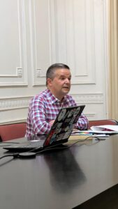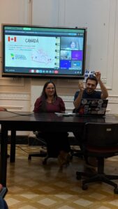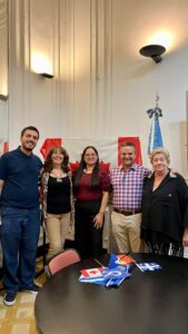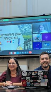Sus palabras dieron marco a la actividad. Un nutrido auditorio presencial y otro virtual, disfrutaron de una dinámica charla a cargo de tres jóvenes profesores de Francés: Gabriela Gordillo y Oliverio Espíndola en la sala, y Micaela Cano virtualmente desde Francia.